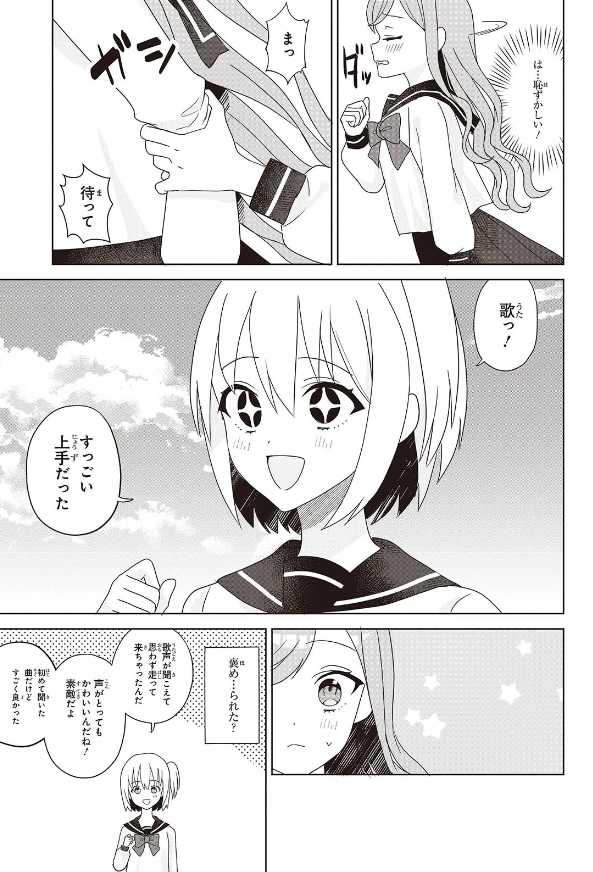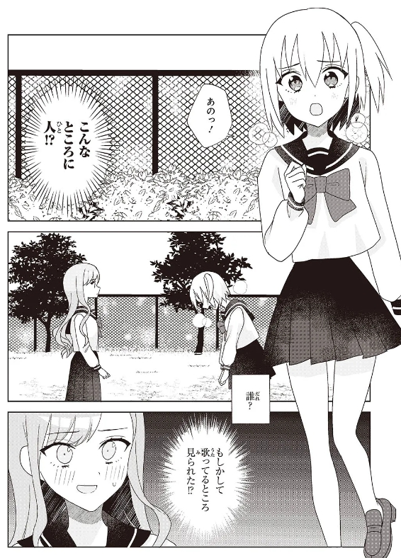 そんなある日いつもの様に歌を歌っていると、急に見知らぬ少女に話しかけられてしまう。恥ずかしさのあまりその場から逃げようとするえるだったが彼女に引き留められ…?